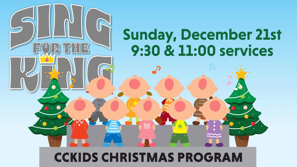 🎶🎤 CCKids Christmas Program 🎶🎤 Join us for a CCKids Christmas Performance on Dec. 21st during the 9:30 and 11 AM services. If your child is between 4 years old-5th grade, check your email for more details on practices and the performance. If you did not receive the email or have additional questions, please reach out to Kelsey Hutcheson (417) 860-1074 or Laura Key at CCKids’ Check-in.